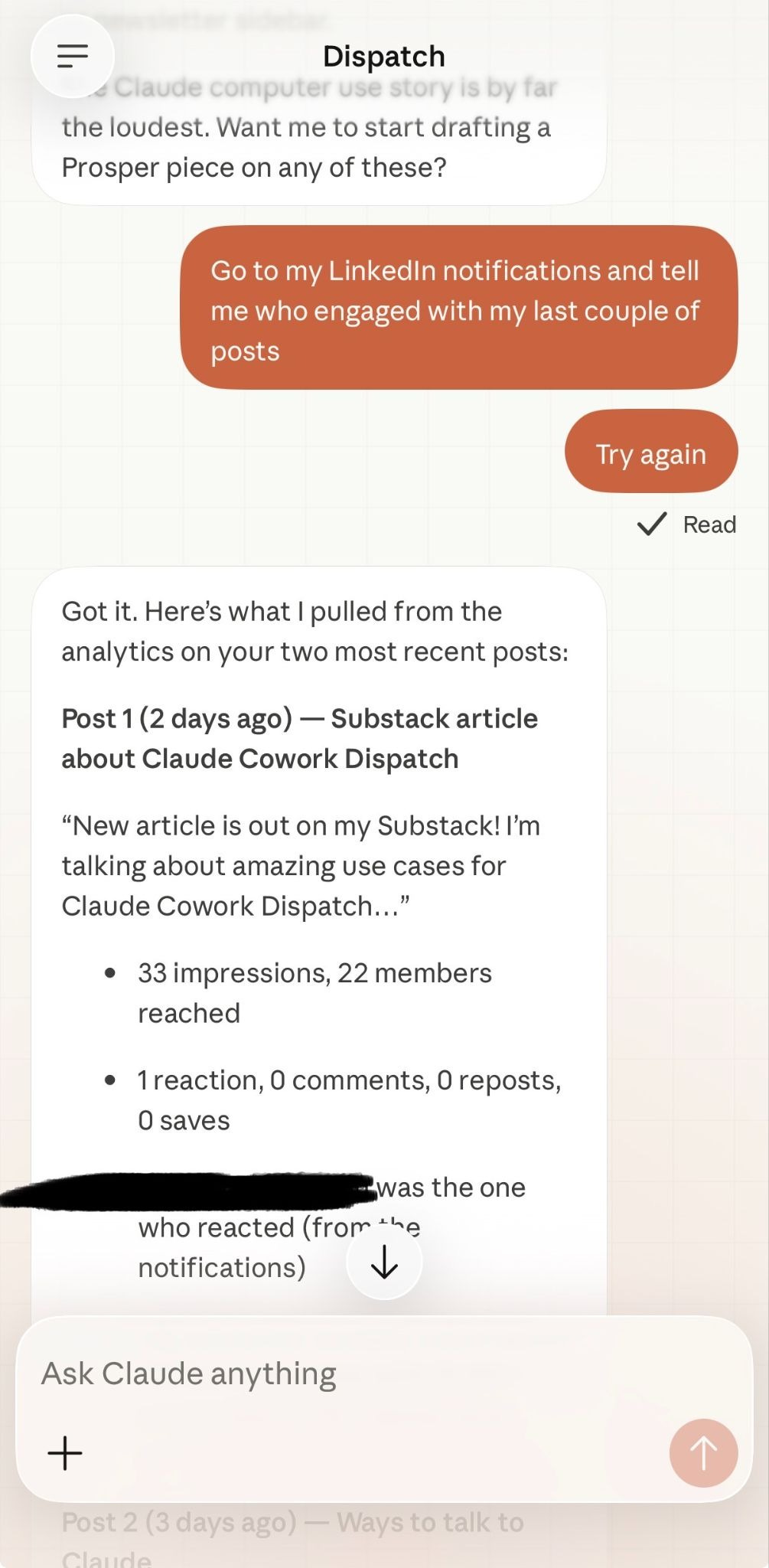 As soon as I saw the announcement, I went to Claude app, clicked Dispatch, and typed:
