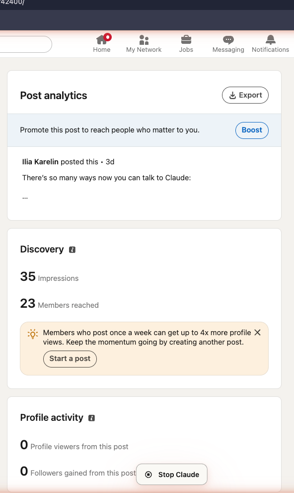 Claude opened Chrome, went to X, scrolled my feed, looked at the engagement numbers, and came back with this: